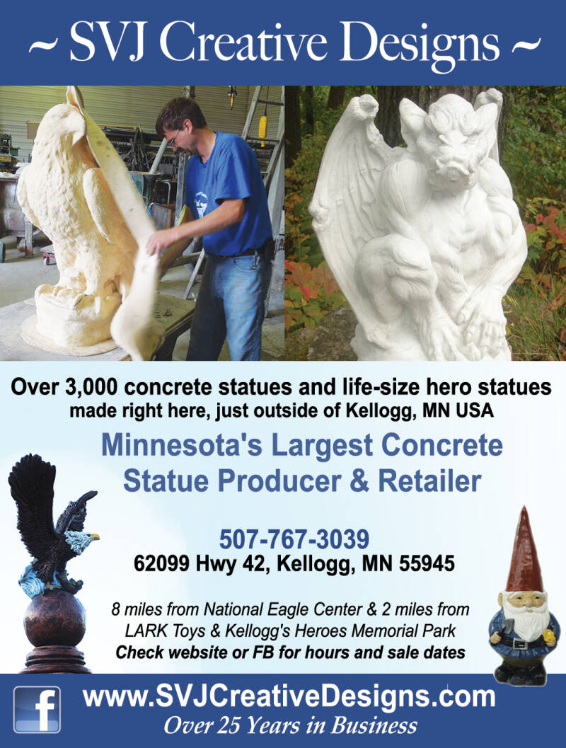 SVJ Creative Designs in Kellogg MN. produced and prepared all the hogs for "The Going Hog Wild in Martin County. Swineherders Alex & Jim made many trips to bring all the hogs to their new home! SVJ is a incredible company to work with, be sure and check out their website by clicking on their photo.
