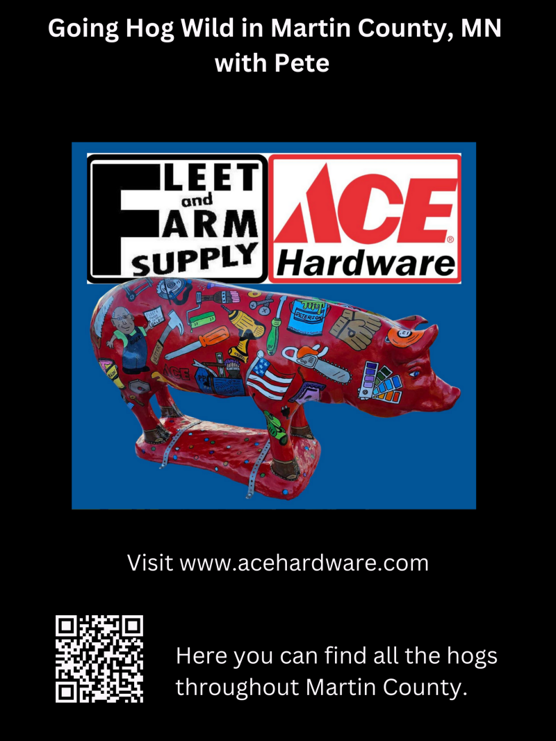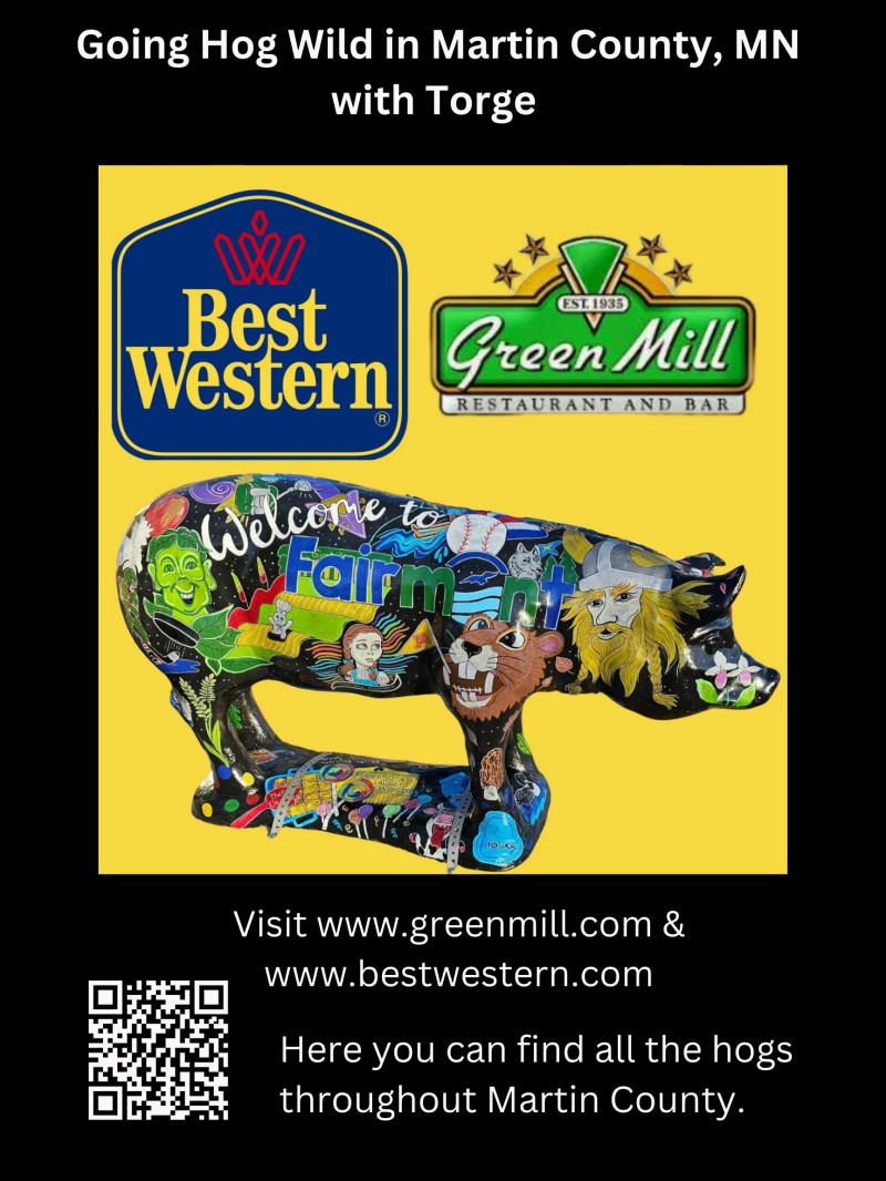 Fairmont is the first town in Martin County to take part in the Going Hog Wild in Martin County project. On this slideshow you will find 75 hog statues that have been placed throughout Fairmont. Then check out each of the hogs and the businesses/organizations who sponsored them and lastly you'll find a list of the businesses/organizations that have hogs in production!